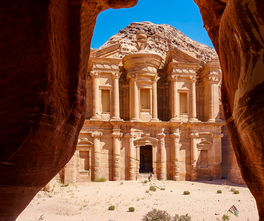 Desayuno. Traslado por la carretera del desierto hacia Petra, una de las siete maravillas del mundo moderno y Patrimonio de la Humanidad declarado por la UNESCO, antigua capital del reino nabateo desde el siglo III a. C. Ingreso a la ciudad a través del Siq, estrecho desfiladero de gran belleza natural, hasta llegar al imponente Tesoro (Al-Khazneh), símbolo de Petra, tallado directamente en la roca. Continuación del recorrido por la ciudad rosa, admirando tumbas reales, templos y construcciones excavadas en la montaña, testimonio de una civilización milenaria. Almuerzo en Petra. Regreso a Amán. Alojamiento y cena.